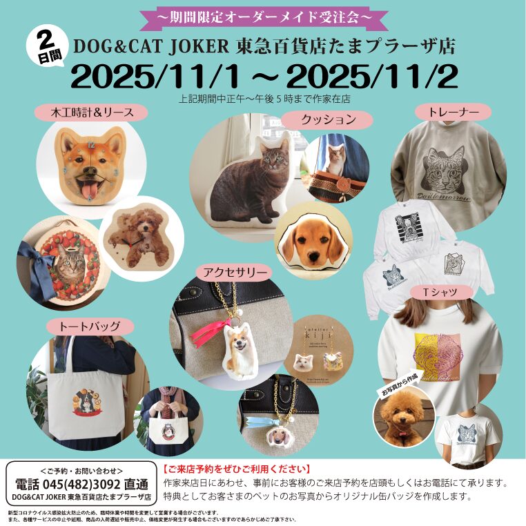 JOKER東急たまプラーザ店にてオーダーメイド受注会を開催 イベント 2025.11.02 11月1日と2日はJOKER東急たまプラーザ店にてオーダー会です。 12時から17時にて店頭におります。 天候も良いので、お散歩がてら遊びに来てください〜❣️