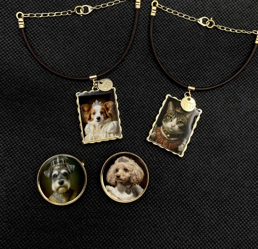 肖像画風の写真を「ブローチ」や「チェーンアクセサリー」に仕立てます。