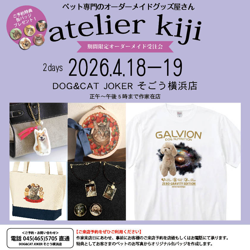 DOG&CAT JOKER そごう横浜店にてオーダーメイド受注会を開催 イベント 2026.04.06 4月18日、19日はJOKER そごう横浜店にてオーダー会です。 12時から17時まで店頭におりますので、お気軽にお声がけください。 よろしくお願いします!